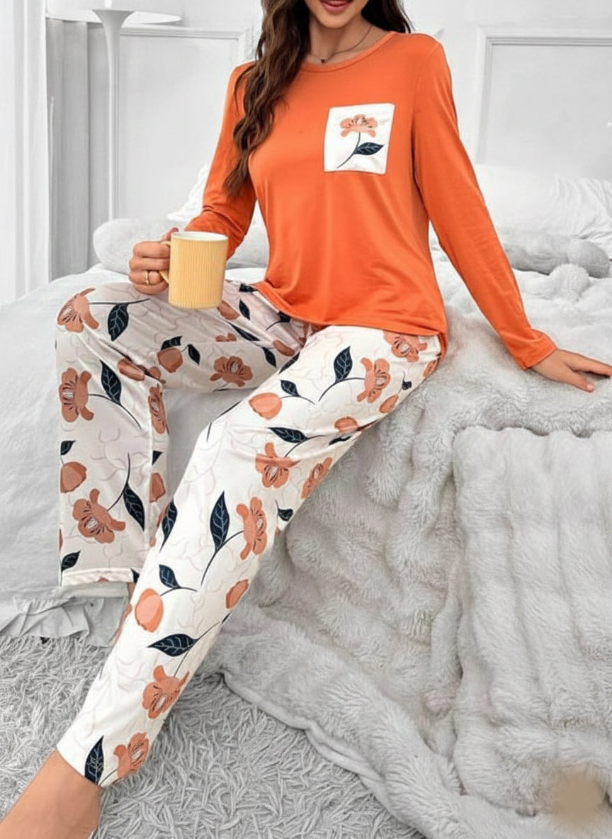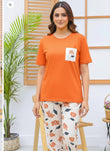 Soft Orange T-Shirt with front Pocket Bottoms For Women Night Wear